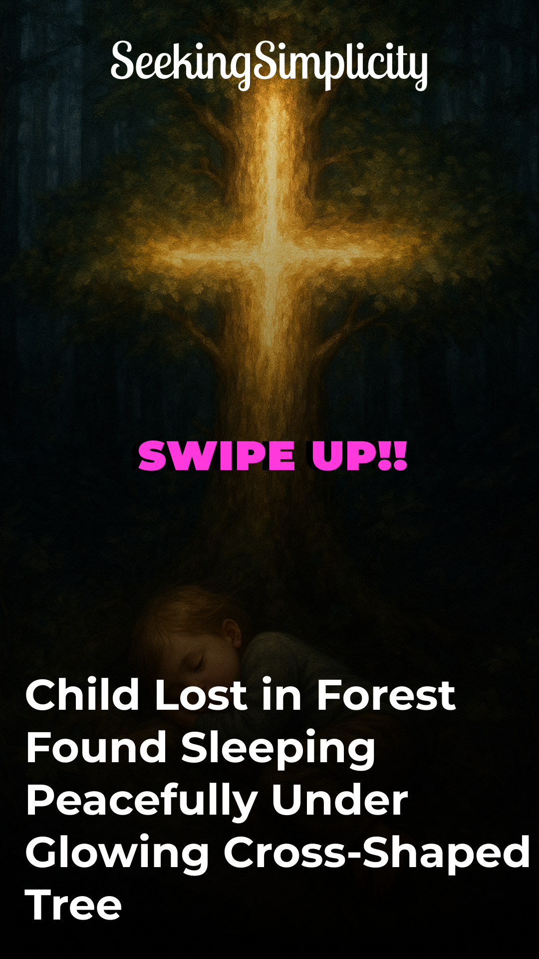 Child Lost in Forest Found Sleeping Peacefully Under Glowing Cross-Shaped Tree