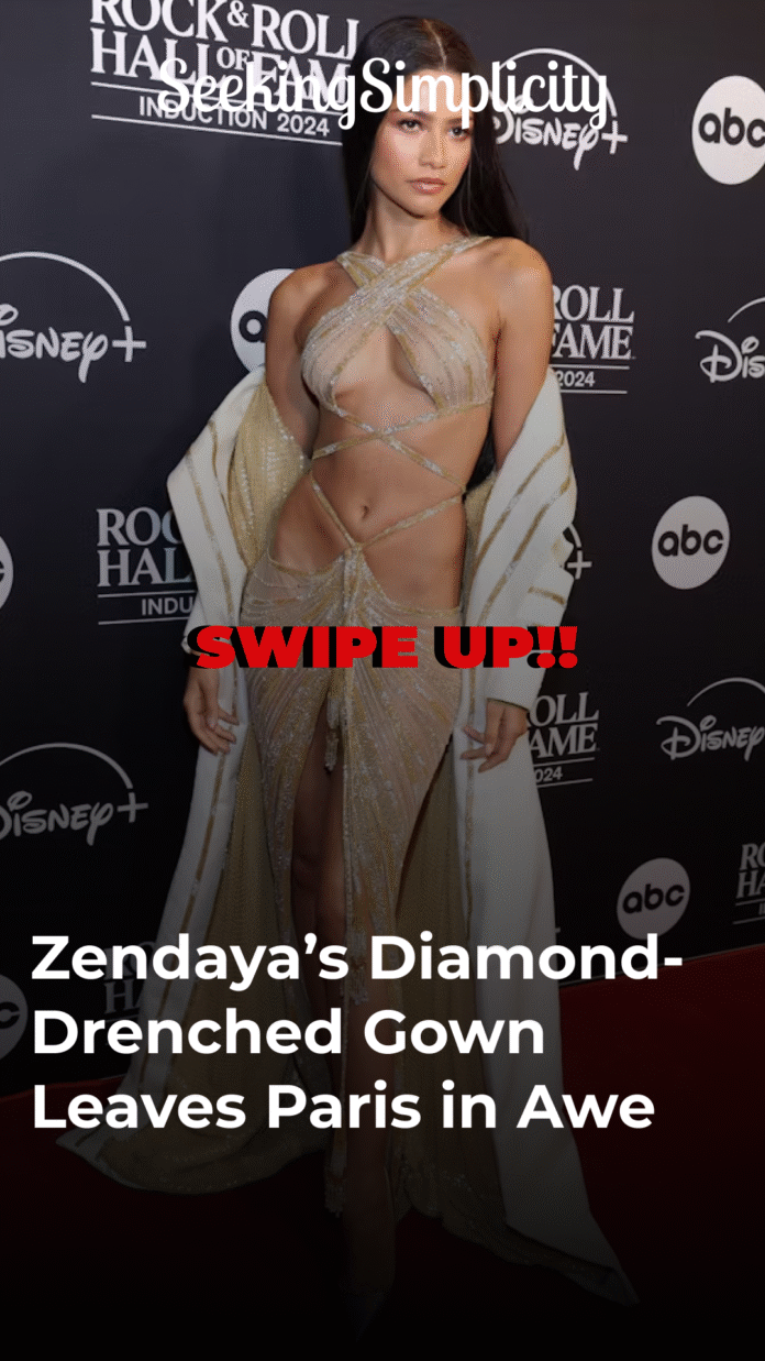 When Zendaya entered Paris Fashion Week, the atmosphere shifted. A hush fell over the venue, not because the audience was unfamiliar with glamour, but because what they saw was more than a dress — it was an event. The actress and style icon emerged in a diamond-drenched gown that seemed less like clothing and more like liquid starlight poured into fabric form.